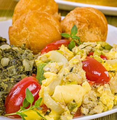 JAMAICAN ACKEE AND SALTFISH, CALLALOO, FRY DUMPLINGS