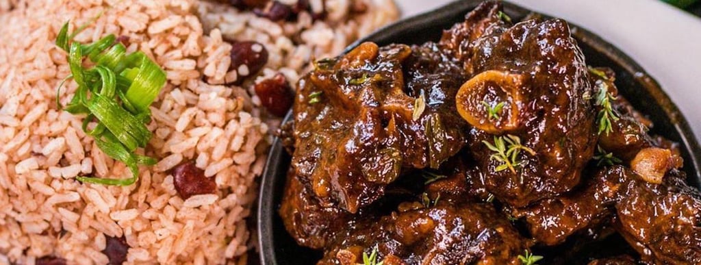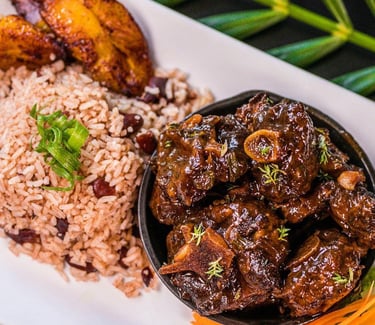 Tender, slow-braised oxtail in rich Jamaican gravy with butter beans.